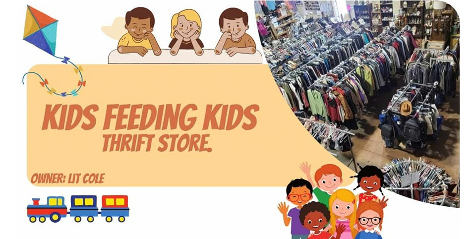 HOURS: The regular hours of operation for the Kids Feeding Kids Thrift Store are: Monday – Friday 9 am – 5 pm; Saturday 10 am – 4 pm.